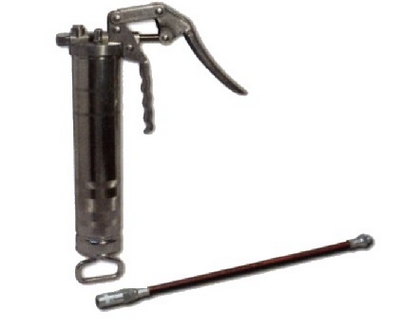 单手油枪,适用粘度2以上黄油, 配有直输油管和四钳口液压软管接头R1/8″, 容积130ccm,工作压力200bar,两种接口(水平和垂直的)