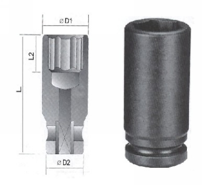 3/8"外六方加长型强力套筒