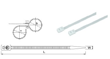 双孔束带可在一次的操作中形成两个回圈。 双孔束带可同时安装2股平行线束,而不需要多使用另一条尼龙束带。 材质: PA66 ,UL耐燃等级94V-2 颜色: 各种颜色可订制