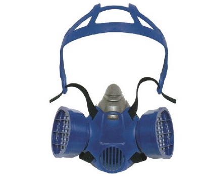 高级橡胶半面罩,弹性头颈带设计,可调节头箍,配合滤盒使用。