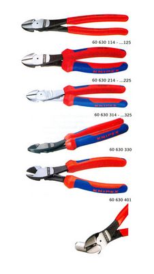 Kraftseitenschneider, 250mm, Kopf poliert, mit Tauchgriffen, KNIPEX