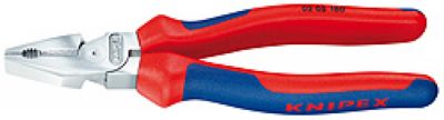 强力型由于采用新式改进型杠力矩设计,省力35%;较长剪切口适合剪切较粗电缆线;钳口适合夹持扁平和圆形材料,用于多种用途;剪切口适合剪切软线,硬线及钢琴丝;剪切刀口附加感应淬火,硬度为洛氏硬度64HRC;长度180,头部镀铬,双重双色手柄;剪切能力直径2.5mm面积16mm