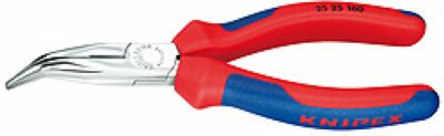 适于电子元件的夹持和剪切;尖形半圆嘴钳口;钳口表面带齿;剪切刀口适于剪切中硬线和硬线;刀口硬度约为洛氏硬度HRC61;长度160,头部镀铬,双色双重材料手柄