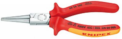 重型,耐磨;不同的钳口;长半圆嘴钳口,钳口表面光滑;长度160,头部镀铬,双色双重材料绝缘手柄