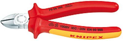 精密的剪切刀口适于剪切软线和硬线;切割硬度约为洛氏硬度62HRC;头部较窄,适用于小空间的操作;型 0:偏刃;长度180,头部镀铬,双色双重材料绝缘手柄