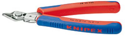 精磨的剪切刀口,无偏刃,适于齐平剪切工作;精密成形的尖端亦可齐根剪切直径0.2mm的材料;采用不锈钢铆钉接合低磨擦剪切使操作疲劳减到最少;采用复位弹簧实现有限制的复位;手柄配有双色双重材料手柄,红色和蓝色;采用INOX-不锈钢材料制成,剪切刀口硬度为洛氏硬度54HRC;长度125,头部不锈钢,双色双重材料手柄