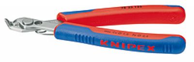 精磨的剪切刀口,无偏刃,适于齐平剪切工作;精密成形的尖端亦可齐根剪切直径0.2mm的材料;采用不锈钢铆钉接合低磨擦剪切使操作疲劳减到最少;采用复位弹簧实现有限制的复位;手柄配有双色双重材料手柄,红色和蓝色;采用60°的斜刀片;长度125,头部不锈钢,双色双重材料手柄