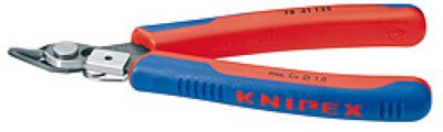 精磨的剪切刀口,无偏刃,适于齐平剪切工作;精密成形的尖端亦可齐根剪切直径0.2mm的材料;采用不锈钢铆钉接合低磨擦剪切使操作疲劳减到最少;采用复位弹簧实现有限制的复位;手柄配有双色双重材料手柄,红色和蓝色;剪切刀口硬度约为洛氏硬度60HRC;长度125,头部磨光,双色双重材料手柄