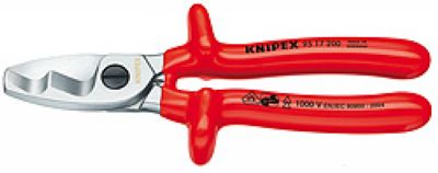 用以剪切铜铝电缆,单股线和多股线;不可用于剪切钢丝和铜质硬拉线;由于采用了适当的高杠杆传输力矩比和新刀片的几何设计,剪切时只需用很小的手力;(上下刀片)初始和最终剪切直径最高达20mm;长度200,头部镀铬,浸塑绝缘手柄