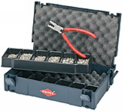 TANOS MINI-systainerTM包装(牢固的塑料盒体);两个可堆叠的塑料插入格,每个各六列,用于装连接端子;钳子97 61 145F,端子数量各500的40/41/42/43/44