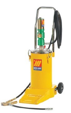 配有: 16L可移动式油桶 货号1000 气动黄油泵1:60 货号1059 随动板?220mm 货号1070 铠装软管3m 货号1081 带管油枪