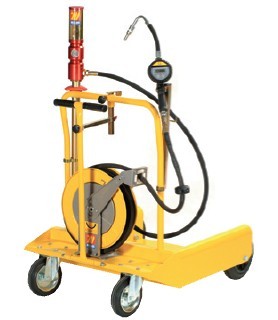 ME1298E用于180-220L油桶,配有: R=5:1bar气动提油泵 四轮手推车 1.5m R1 1/2”内螺纹--内螺纹油管 10m,R1 3/8” 提油软管卷盘 数显流量计数油嘴