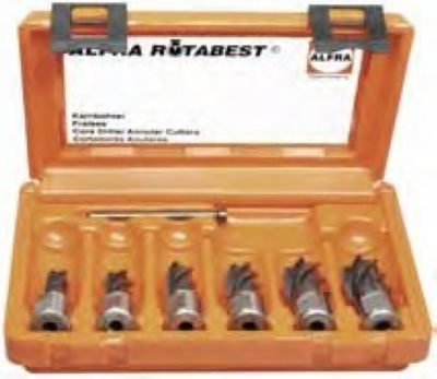 6-er Set Kernbohrer: mit je 1 x ? 14.0 - 16.0 - 18.0 - 20.0 - 22.0 - 26.0 mm in Kunststoffkassette incl. 1 Auswerferstift Art.-Nr. 1950500