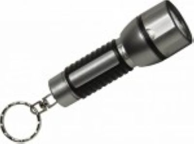 Compact torch with a superbright LED. Rubberised handle, rotating key-ring. Twist-switch in the head of the torch. Waterproof. Includes 1 AA battery.