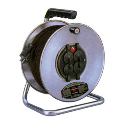 Stahlblechkabeltrommel 50m Gummikabel 3x1,5mm² mit 4 Schutzsteckdosen