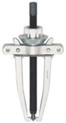 Abzieher mit automatischer Selbstspannung und konusgeführter Spannweiteneinstellung. Durch die umlaufende Radialfeder am oberen Rand der Abzughaken entsteht eine Federspannung, wodurch sich die Haken beim Ansetzen an das abzuziehende Teil selbstts?ndig an