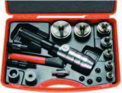 专门用于在电气柜和不锈钢柜上开国际标准尺寸电缆过线孔。 压膜尺寸PG 9-11-13-16-21-29-36-42 手动液压开孔力7.5吨力, 压力650巴,轻松便携。 普通碳钢钢板开孔厚度≤3, 不锈钢板≤2.5mm。