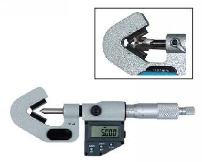 用于测量带有奇数沟槽的工件: 表面亚光镀铬 激光刻度 测头面镶嵌硬金属 棱柱式测头 漆面隔热手柄 夹紧杆能快速、准确定位 摩擦棘轮测力 提供校对量杆和调整器