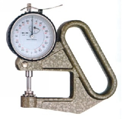 用于测量各种零件的厚度, 可以测量被测件中间部位的厚度。 铝尺架,轻便。 测量时,压下压杆可提起测量杆并带动测头。 缓慢松开压杆,测头接触被测部位, 可在表盘上读数。